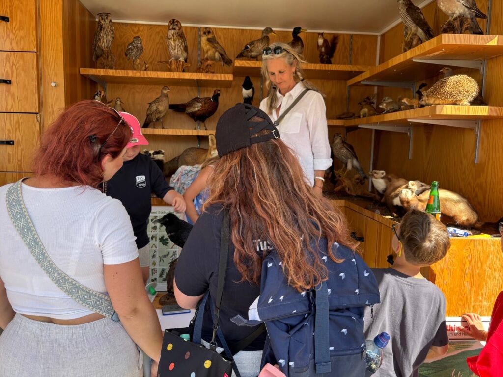 Im liebevoll gestalteten Waldschulwagen konnten zahlreiche Tierpräparate bestaunt werden, die die reiche und vielfältige Wildpopulation unserer Region anschaulich machten. So bekamen Kinder wie Erwachsene einen direkten Einblick in die Tierwelt vor der eigenen Haustür.